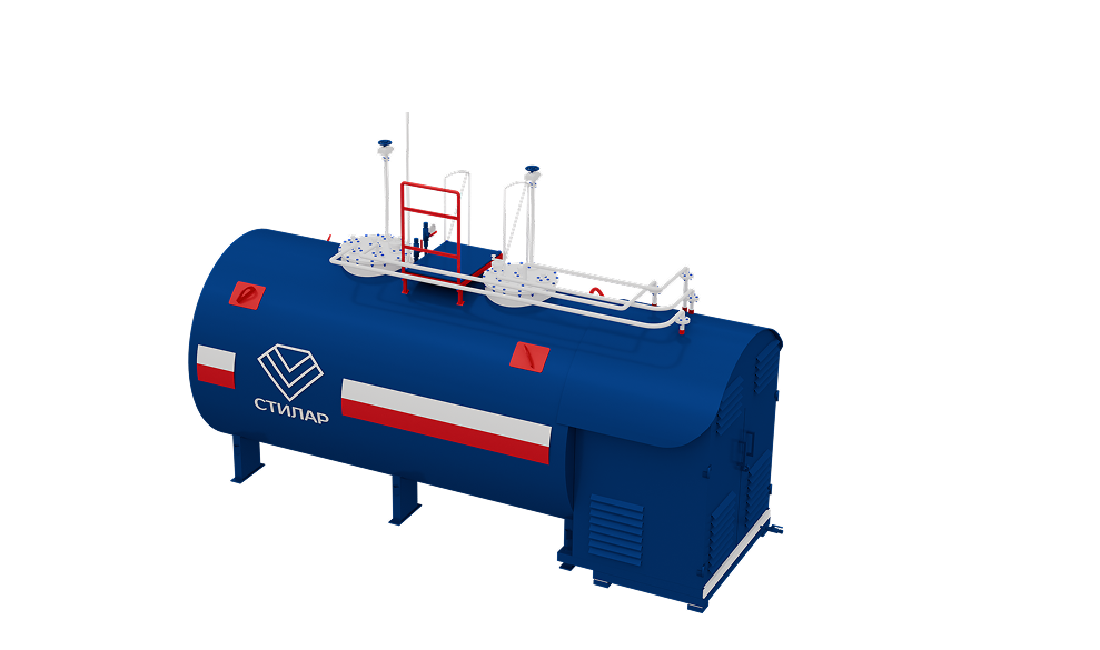 | Резервуар | двустенный трёхсекционный резервуар объемом 35 м.куб. (сталь Ст3 4/4мм, система контроля межстенного пространства с сиреной, азот) | |